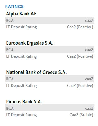 Οι αξιολογήσεις των ελληνικών τραπεζών από τη Moody's