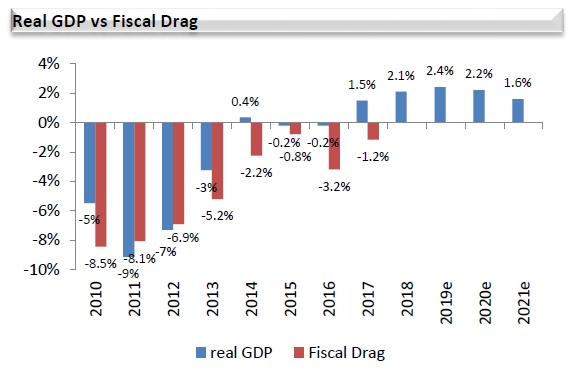 Μάλιστα, υπενθυμίζει ότι τα μέτρα ύψους 36% του ΑΕΠ που εφαρμόστηκαν από το 2010, κόστισαν στην ελληνική οικονομία το 25% του ΑΕΠ.