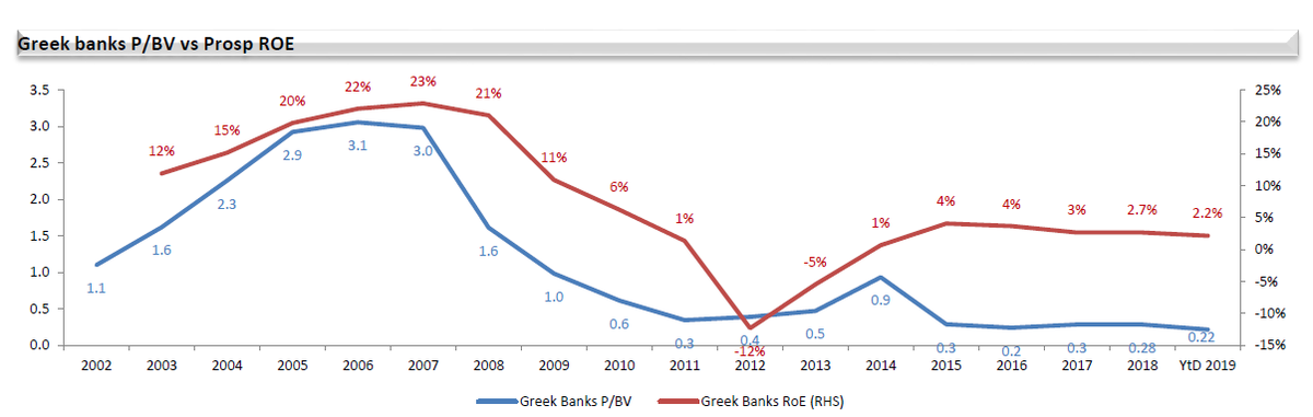Η κεφαλαιοποίηση των τραπεζών έναντι του ΑΕΠ είναι στο 2,5%, έναντι 17% το 2014 και 21% την περίοδο 1998-2008.