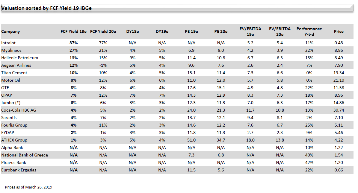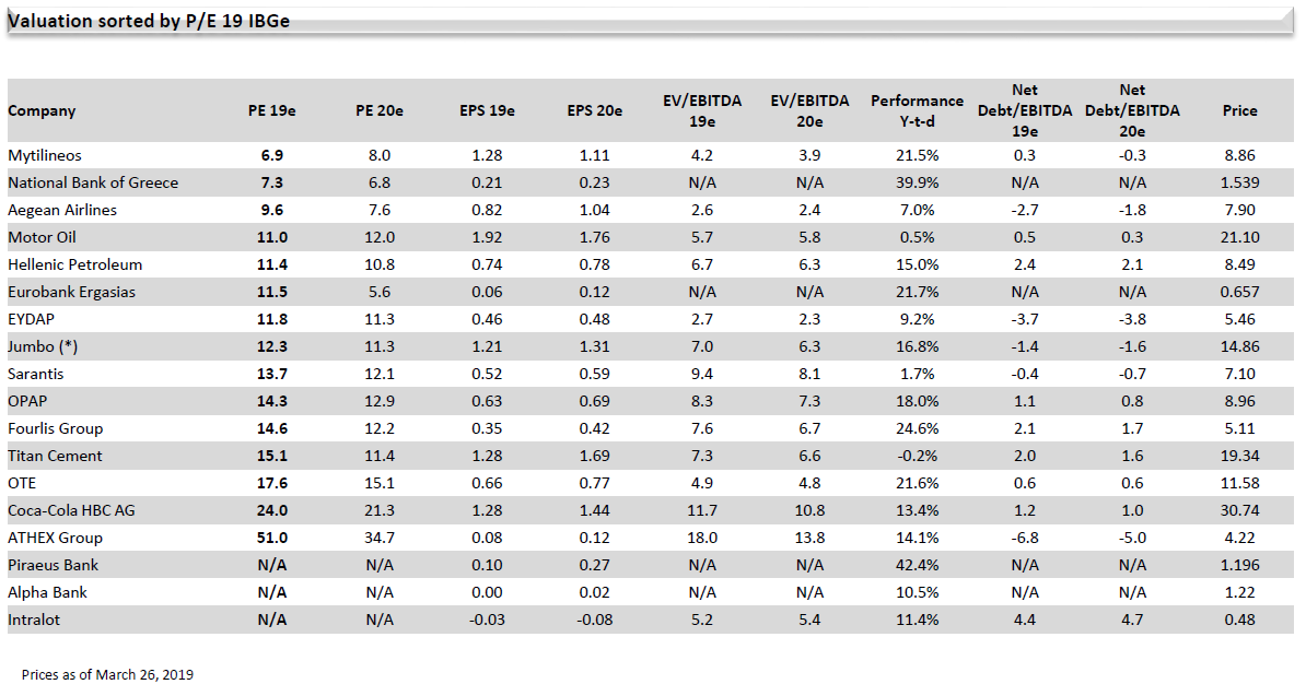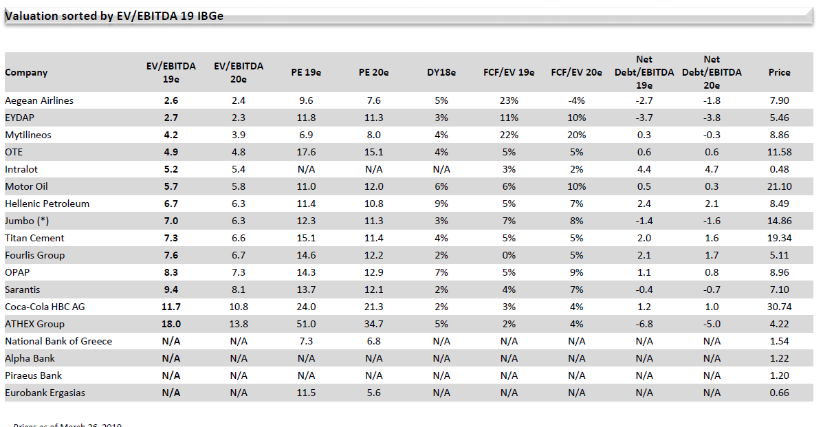 Οι εκτιμήσεις τις IBG για τις μετοχές που καλύπτει: