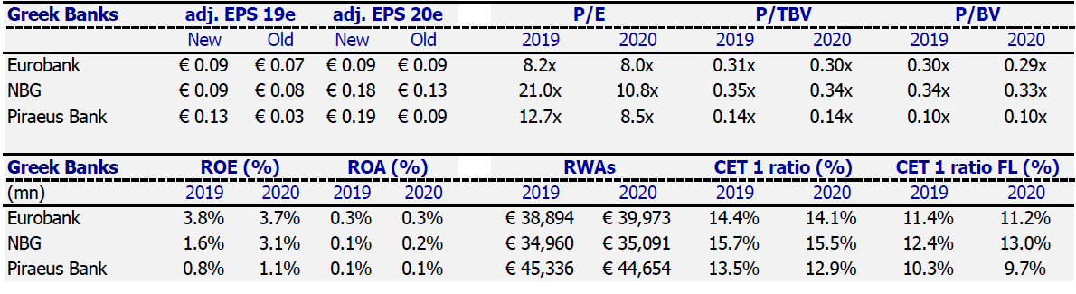 Μετά τις ανακοινώσεις των αποτελεσμάτων, οι 4 ελληνικές συστημικές τράπεζες επικαιροποίησαν τους στόχους των αποθεμάτων NPE έως το τέλος του 2021, οι οποίοι απαιτούν μείωση κατά 66% έναντι 59% προηγουμένως, στοχεύοντας σε σωρευτικό απόθεμα ύψους 26,5 δισ. από 79 δισ. ευρώ στο τέλος του 2018.