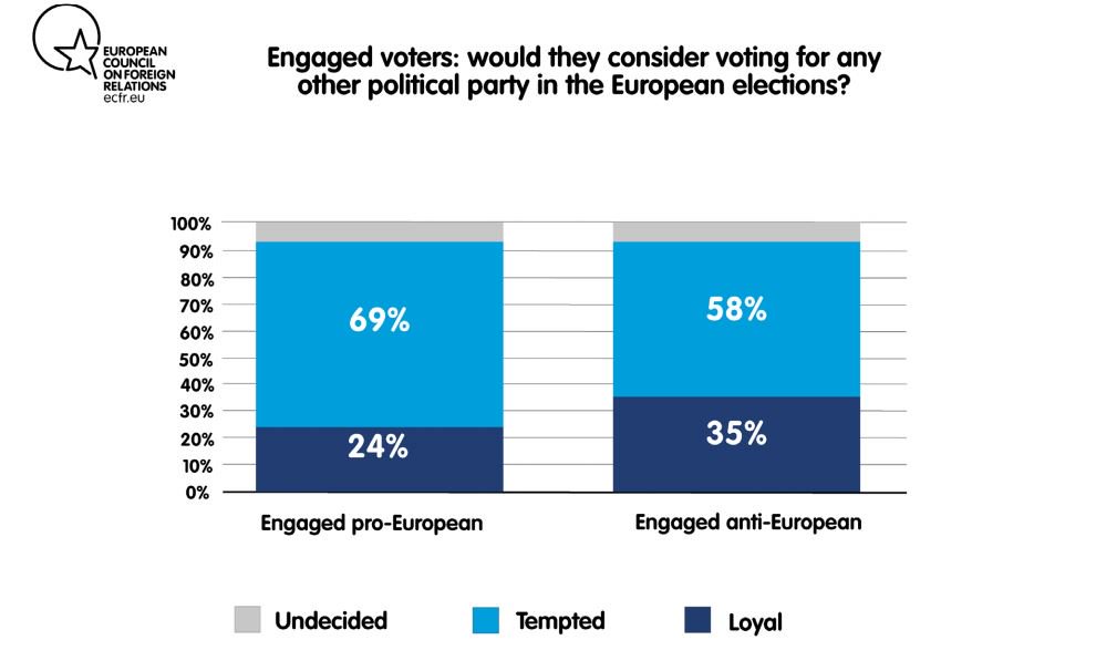 Η έκθεση δείχνει, σύμφωνα με τον επικεφαλής του think tank, Mark Leonard, ότι το ευρωπαϊκό εκλογικό σώμα βρίσκεται σε μια «κατάσταση έντονης αστάθειας, παρά πόλωσης» με αναποφάσιστους ψηφοφόρους που κινούνται «ρευστά μεταξύ κομμάτων της Δεξιάς και της Αριστεράς».