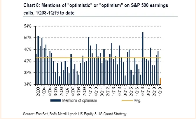 Βάσει των στοιχείων που έχει συγκεντρώσει η BofA μέχρι στιγμής έχει ανακοινώσει αποτελέσματα α’ τριμήνου 2019 το 56% των εταιρειών που είναι εισηγμένες στον S&P 500.