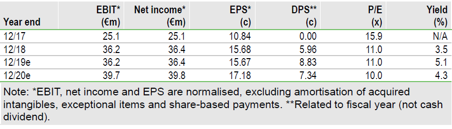 Υποθέτοντας μια σταθερή πολιτική διανομής του 50% των κερδών, ο ΑΔΜΗΕ θα πρέπει να μοιράσει 8,8 σεντς το 2019, που σημαίνει μερισματική απόδοση 5%.