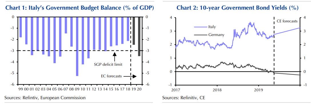 Το ρίσκο αυξάνεται σύμφωνα με την Capital Economics και δεν αποκλείεται η Ιταλία να ενταχθεί σε πειθαρχική διαδικασία εντός του 2019.