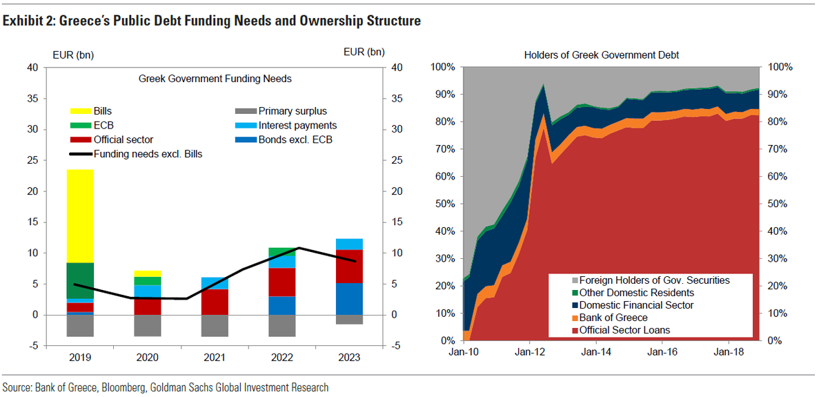 Η εκτίμηση της Goldman Sachs για τη δημοσιονομική δυναμική της Ελλάδας είναι επίσης θετική βραχυπρόθεσμα και σε γενικές γραμμές ευθυγραμμισμένη με αυτή της Ευρωπαϊκής Επιτροπής.