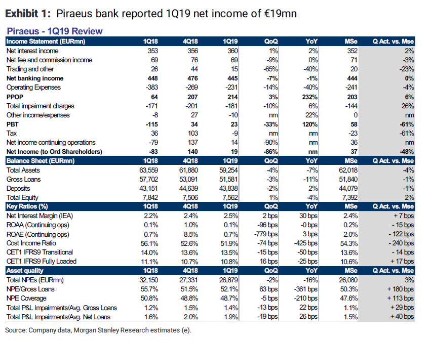 Τέλος, αναφορικά με τα αποτελέσματα που ανακοίνωσε η Πειραιώς για το πρώτο τρίμηνο του έτους, η Deutsche Bank επισημαίνει ότι το λειτουργικό κόστος ήταν καλύτερο του αναμενομένου, εντούτοις οι προβλέψεις ήταν χαμηλότερες του αναμενομένου.