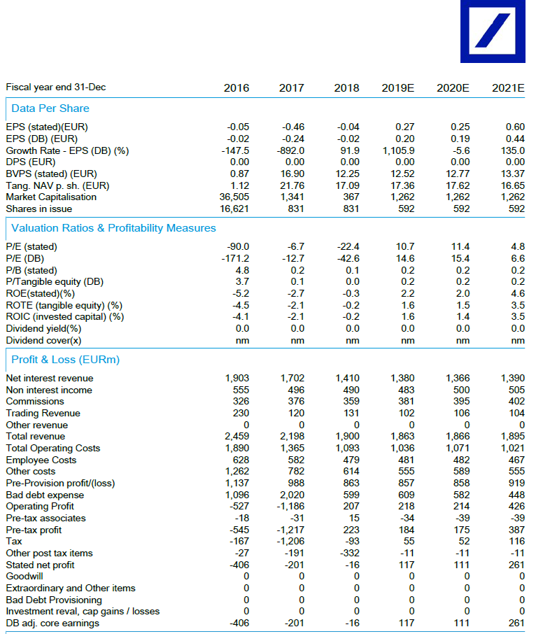 Οι συστάσεις, όπως ήταν αναμενόμενο είναι underweight, ήτοι για αποδόσεις χειρότερες από αυτές της αγοράς, από την Morgan Stanley και hold, διακράτηση, από την Deutsche Bank.