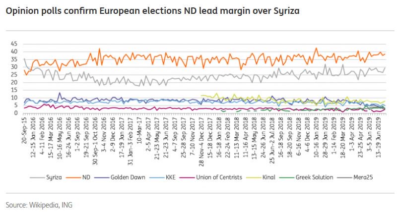 Δεν αναμένουμε ότι μια νέα κυβέρνηση υπό τον Μητσοτάκη δεν θα επιδιώξει αναθεώρηση των δημοσιονομικών στόχων για τον προϋπολογισμό του 2020 αλλά για εκείνον του 2021... τροφή για σκέψη για τη νέα Κομισιόν» επισημαίνεται σε σχετική ανάλυση.