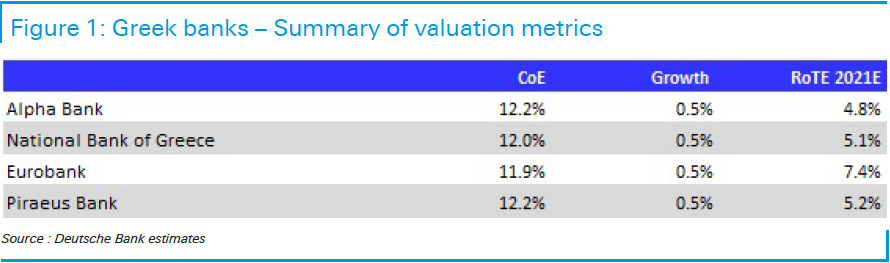Οι οργανικές μειώσεις των NPEs θεωρούνται σημαντικές από την Deutsche Bank, ενώ θεωρεί ότι και οι τέσσερις ελληνικές συστημικές τράπεζες θα μπορούν να κάνουν χρήση των κεφαλαίων τους προκειμένου να καλύψουν τυχόν ζημίες που μπορεί να προκύψουν από την εφαρμογή των σχεδίων μείωσης των NPEs.