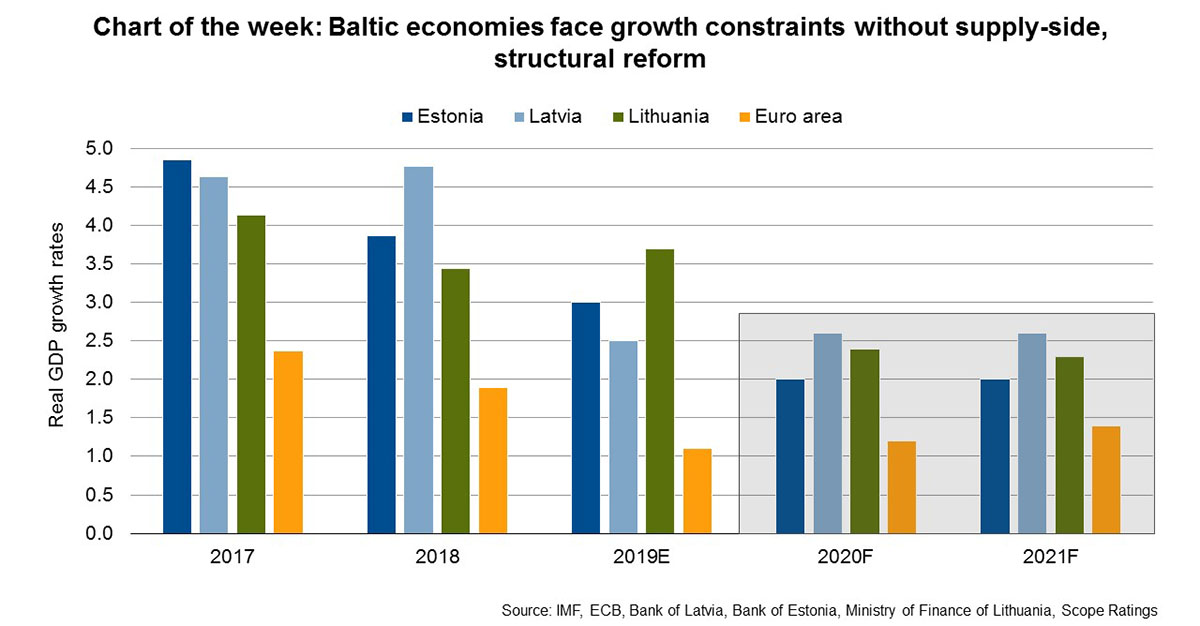 Το Scope αναμένει αύξηση 2,5% στη Λιθουανία και τη Λετονία και 2% στην Εσθονία το 2020 καθώς η εξωτερική ζήτηση αποδυναμώνεται.