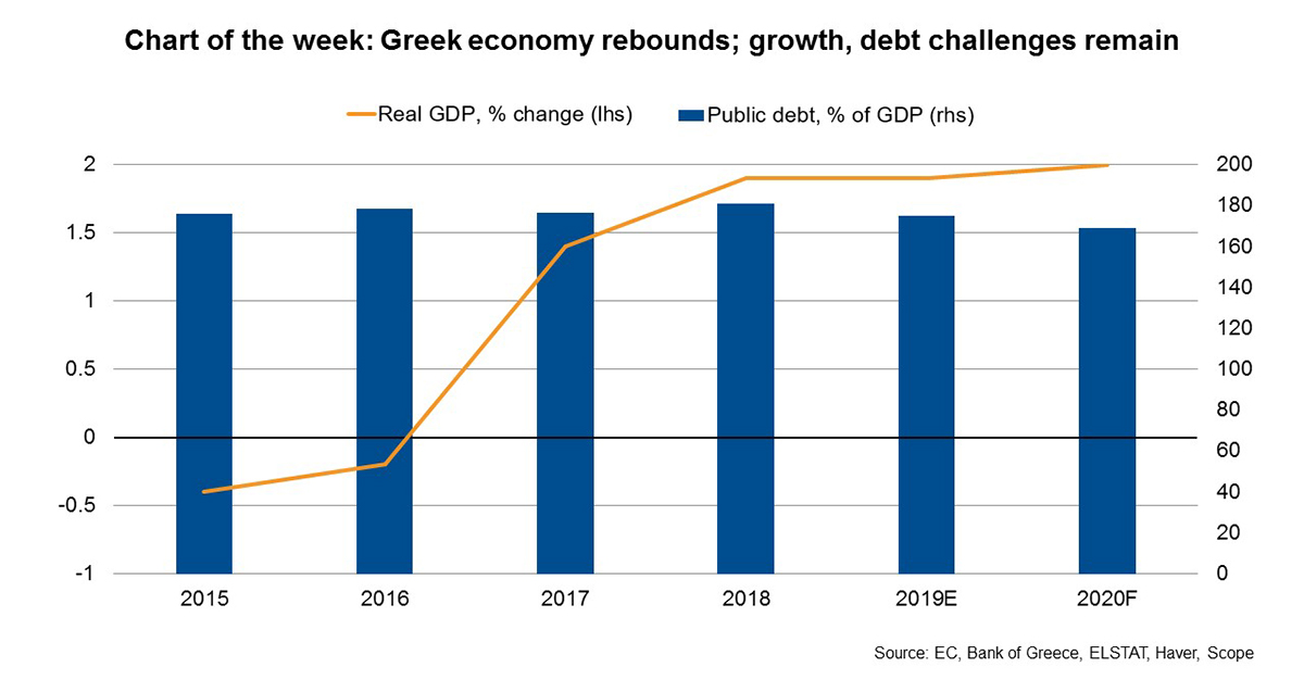 Η οικονομία της Ελλάδας συνεχίζει να ανακάμπτει, ενώ η νέα κυβέρνηση του Κυριάκου Μητσοτάκη μπορεί να δώσει πρόσθετη ώθηση, μόνο εάν παραμείνει πιστή στις υποσχέσεις της να ολοκληρώσει τις μεταρρυθμίσεις, όπως σημειώνει σε report του ο οίκος αξιολόγησης Scope.