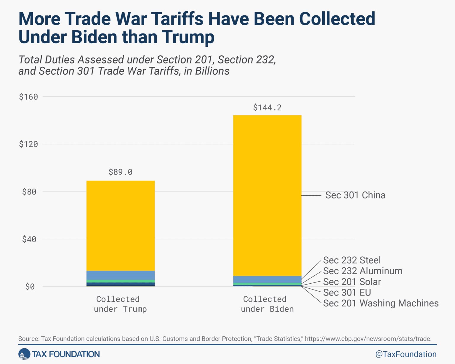 Trump και Biden υιοθέτησαν έτσι πολιτικές υπέρ των δασμών που προστάτευαν τα κέρδη πολλών εταιρειών - και όχι τα εισοδήμαα των εργαζομένων.