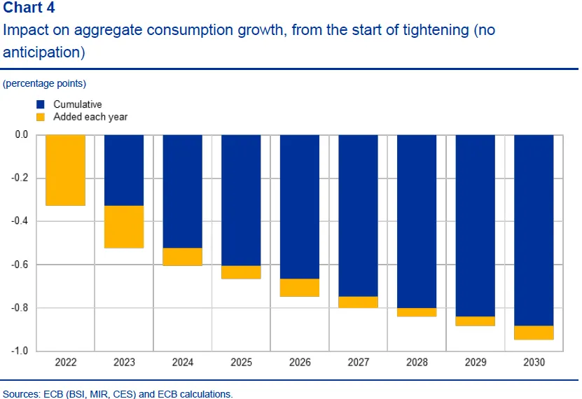 «Ο αντίκτυπος στη συνολική κατανάλωση ανέρχεται σε μία ποσοστιαία μονάδα μεταξύ 2022 και 2030, με το 35% των επιπτώσεων να μην έχει ακόμη υλοποιηθεί», επισημαίνεται στην ίδια μελέτη.