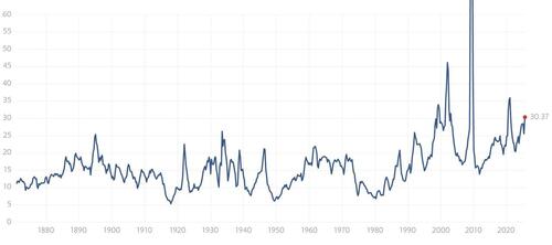 Παράλληλα, οι βασικοί δείκτες παρουσιάζουν πολύ υψηλές αποτιμήσεις. Ο δείκτης S&P 500 εμφανίζει δείκτη τιμής προς κέρδη (P/E) στο 30, δηλαδή σχεδόν διπλάσιο από τον ιστορικό μέσο όρο του 16. Οι μόνες περίοδοι που ο δείκτης είχε υψηλότερο P/E ήταν: