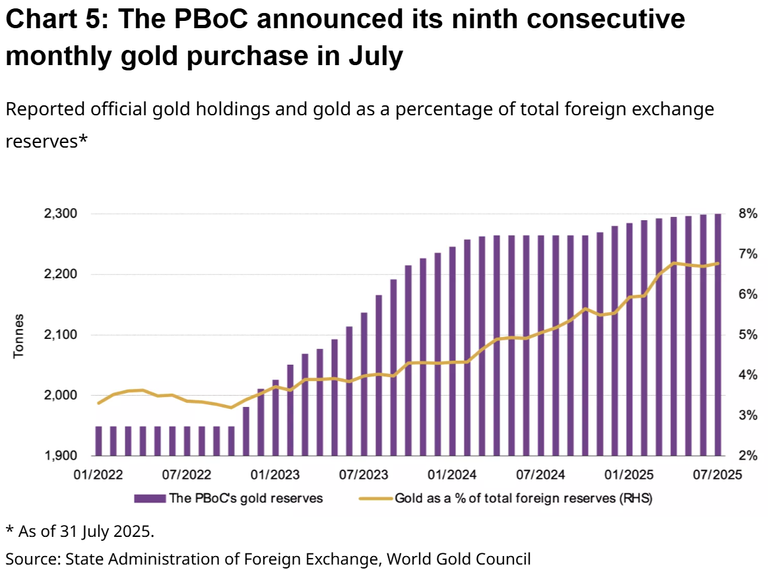 Η τάση συσσώρευσης συνεχίζεται, με 378 τόνους καθαρών αγορών μόνο στο πρώτο εξάμηνο του 2025.