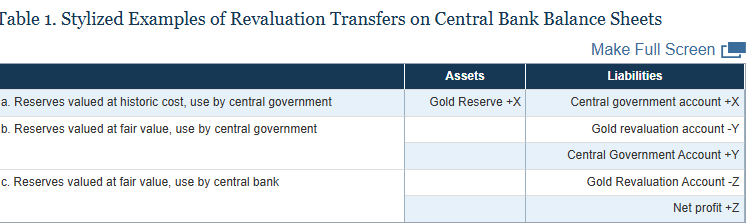 Στην εισαγωγή της μελέτης Official Reserve Revaluations: The International Experience αναφέρεται: «Με το δημόσιο χρέος σε υψηλά επίπεδα, ορισμένες κυβερνήσεις εξετάζουν τρόπους να χρηματοδοτήσουν πρόσθετες δαπάνες χωρίς να αυξήσουν τη φορολογία και χωρίς να εκτινάξουν το υφιστάμενο δημόσιο χρέος. Μία πιθανότητα είναι η χρήση των κερδών από μια αναπροσαρμογή της αποτίμησης από τα αποθέματα χρυσού, όπως έχει προταθεί πρόσφατα στις ΗΠΑ και στο Βέλγιο».