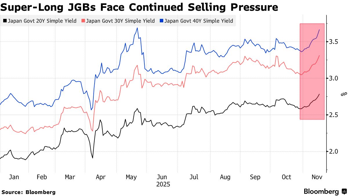Η άνοδος των αποδόσεων των 30ετών και 40ετών ιαπωνικών ομολόγων, που έφτασαν το 3,2% και 3,5% αντίστοιχα, αποτελεί σημαντική μετατόπιση για μια χώρα όπου το επίσημο επιτόκιο της Τράπεζας της Ιαπωνίας κυμαίνεται γύρω στο 0,5%.