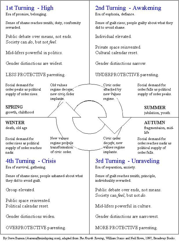Εδώ αξίζει να επιστρέψουμε στο βιβλίο The Fourth Turning του Neil Howe.
