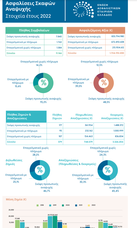 Σύμφωνα με την έρευνα για το 2022 εκδόθηκαν 11.166 πολυασφαλιστήρια συμβόλαια, ενώ καταγράφηκαν ακόμη 28.494 αυτόνομα συμβόλαια κάλυψης αστικής ευθύνης, μέρος των οποίων παρέμεινε σε ισχύ και εντός του 2023.