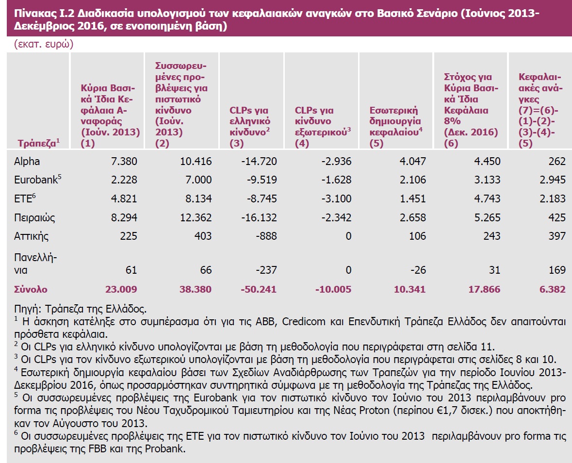Η σχετική έκθεση, που βρίσκεται αναρτημένη στον ιστότοπο της Τράπεζας της Ελλάδος, περιγράφει αναλυτικά την επίδραση που προβλέπεται ότι θα ασκήσουν στις εκτιμώμενες κεφαλαιακές ανάγκες των τραπεζών για την περίοδο 2013-2016: