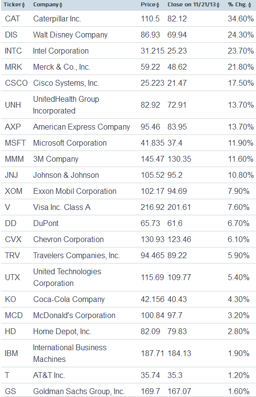 Πως έχουν κινηθεί οι μετοχές του Dow Jones