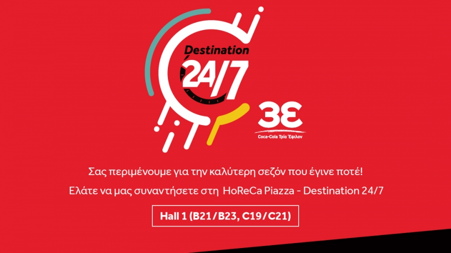H Coca-Cola Τρία Έψιλον μάς υποδέχεται στην Έκθεση HoReCa 2023, 10 έως 13 Φεβρουαρίου, με το διευρυμένο 24/7 χαρτοφυλάκιό της. Έτοιμη για μία μοναδική καλοκαιρινή σεζόν, η εταιρεία προσκαλεί όλους τους επαγγελματίες HoReCa να επισκεφτούν τη HoReCa Piazza- Destination 24/7, τον απόλυτο προορισμό 24/7, που δίνει αξία σε κάθε περίσταση κατανάλωσης!