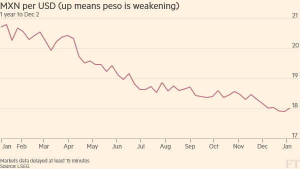Μάλιστα, σήμερα εκτινάχθηκε άνω των 14 πέσο/δολάριο, σημειώνοντας χαμηλό δύο ετών.