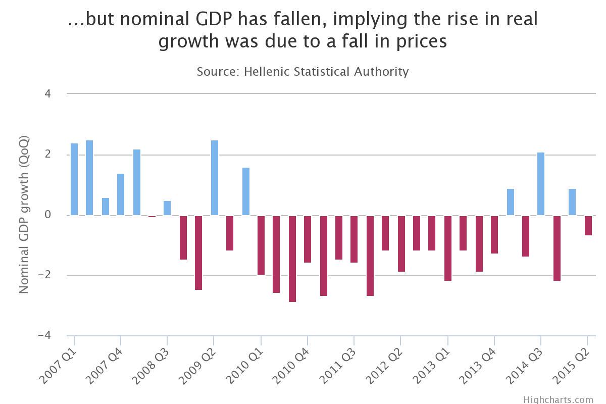 Το ονομαστικό ΑΕΠ της Ελλάδας, ωστόσο, υποχώρησε, κάτι που θα οδηγεί σε περαιτέρω επιδείνωση του χρέους της χώρας.