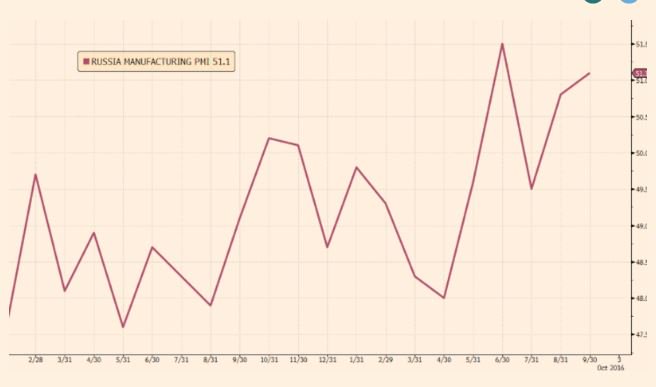 Ανώτερη των εκτιμήσεων παρουσιάστηκε η επιτάχυνση της ανάπτυξης στον Μεταποιητικό κλάδο της Ρωσίας για τον Σεπτέμβριο του 2016, σύμφωνα με τα στοιχεία της Markit, γεγονός που δείχνει ότι τα χειρότερα για την οικονομία της χώρας ενδεχομένως να πέρασαν.