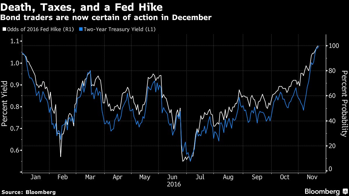 Βέβαιη θεωρούν οι traders της αγοράς ομολόγων την αύξηση επιτοκίων από τη Federal Reserve τον Δεκέμβριο του 2016, σύμφωνα με δημοσίευμα του Bloomberg.