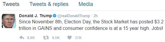 «Από τις 8 Νοεμβρίου, την ημέρα των εκλογών, η χρηματιστηριακή αγορά έχει καταγράψει κέρδη 3,2 τρισ. δολάρια και η καταναλωτική εμπιστοσύνη είναι σε υψηλό 15 ετών.