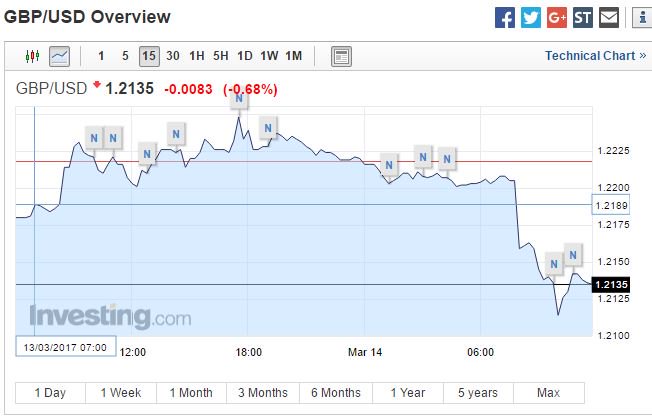 Το βρετανικό νόμισμα υποχωρεί σε χαμηλά δέκα εβδομάδων έναντι του δολαρίου, στα 1,2127 δολ από 1,2218 χθες