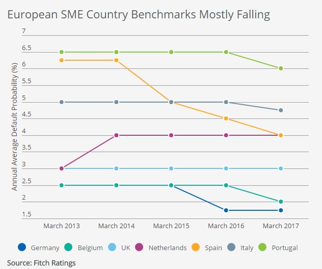 Ως αποτέλεσμα των παραπάνω, η Fitch μείωσε και την εκτίμησή της για το μέσο ποσοστό χρεοκοπιών των ΜμΕ σε Ισπανία, Ιταλία, Πορτογαλία και Βέλγιο, για το 2017, όπως φαίνεται και στον πίνακα, ενώ δεν προχώρησε σε κάποια αλλαγή σε ό,τι αφορά στο Ηνωμένο Βασίλειο, την Ολλανδία και τη Γερμανία, τη χώρα με το χαμηλότερο ποσοστό χρεοκοπιών ΜμΕ στην Ευρώπη, μόλις στο 1,75%!