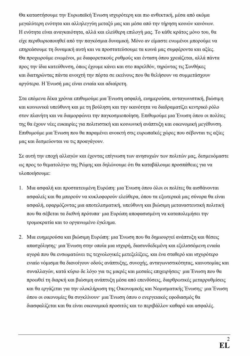 Η Επετειακή Σύνοδος της Ρώμης κάλεσε τους ηγέτες της να αποφασίσουν για το εάν θα προχωρήσουν σε αυτή την "ατυπη" διχοτόμησή της ή θα συνεχίσουν ενωμένοι στην ολοκλήρωσή της, 60 χρόνια μετά την δημιουργία της, όπως ήταν άλλωστε το όραμα των ιδρυτών της;