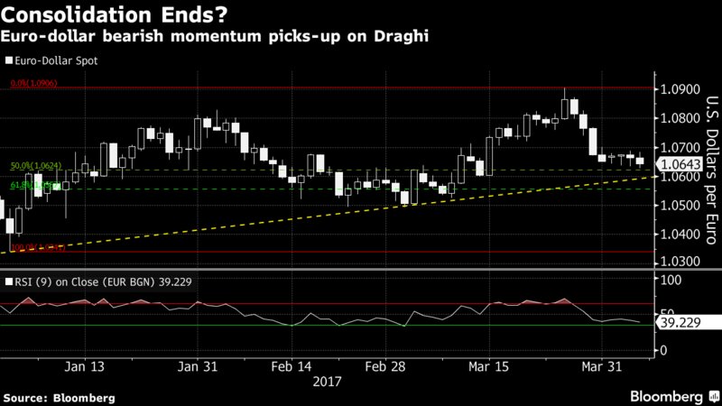 Το ευρώ υποχωρεί στα χαμηλότερα επίπεδα από τις 14 - 15 Μαρτίου, στα 1,0646 δολ. με πτώση 0,2%.