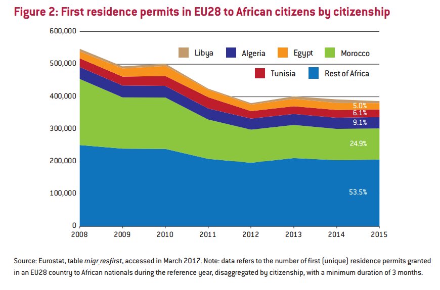 Η μετανάστευση από την Αφρική στην Ε.Ε. είναι σχετικά σταθερή, περίπου στους 500.000 μετανάστες το χρόνο