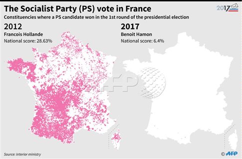 Από το 2012, όταν ο Hollande κέρδισε τις εκλογές και το κόμμα στη συνέχεια εξασφάλισε σχεδόν τη συντριπτική πλειοψηφία στη Βουλή, φτάσαμε μέσα σε μια 5ετία στη σημερινή κατάρρευση.