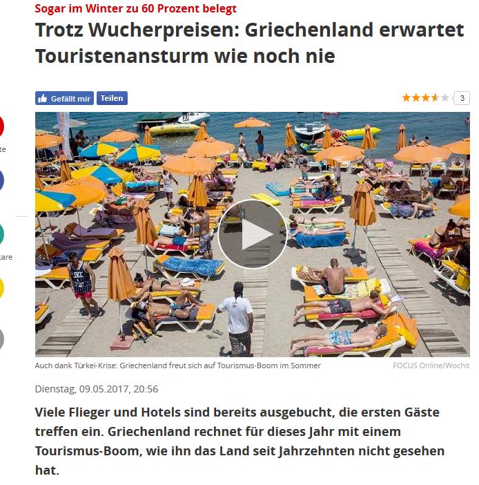 Στο ρεκόρ τουριστών, που αναμένει το καλοκαίρι του 2017 η Ελλάδα αναφέρεται το γερμανικό περιοδικό Focus.