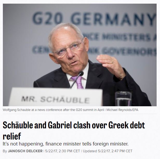 «Το μήνυμα του συντηρητικού Schaeuble προς τον σοσιαλδημοκράτη, Gabriel: το γερμανικό κοινοβούλιο δεν συμφώνησε σε περαιτέρω περικοπές του χρέους και δεν θα το κάνει.