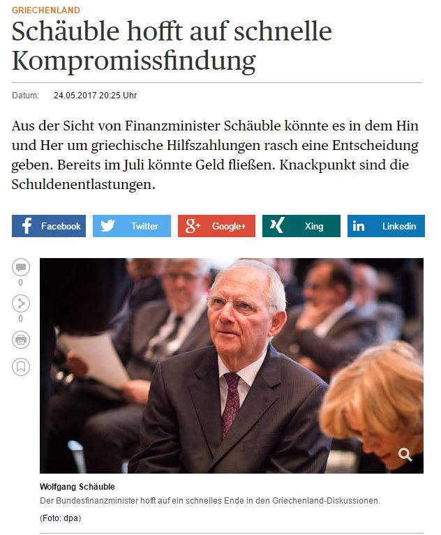 Η γερμανική εφημερίδα αναφέρεται και στο εμπιστευτικό έγγραφο του ΕSM, το οποίο αποκάλυψε το Reuters και παρουσιάζει τρία σενάρια για το ελληνικό χρέος.