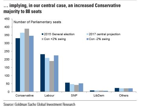 Oι επικείμενες βρετανικές γενικές εκλογές, στις 8 Ιουνίου, δεν θα αντιστρέψουν την απόφαση για «Brexit» που ελήφθη τον περσινό Ιούνιο, αναφέρει σε ανάλυσή της η Goldman Sachs.