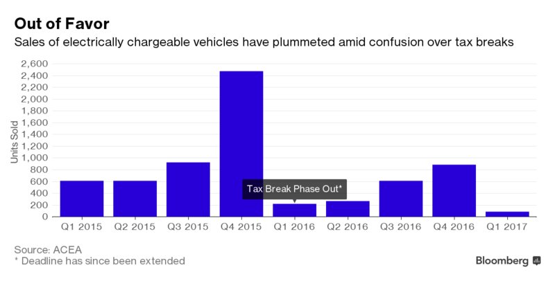 Σύμφωνα με τα αρχικά σχέδια της κυβέρνησης, οι φορολογικές ελαφρύνσεις έπρεπε να καταργηθούν σταδιακά από το 2016 έως το 2020, όταν θα αντιμετωπίζονταν με τον ίδιο τρόπο όπως τα παραδοσιακά αυτοκίνητα.