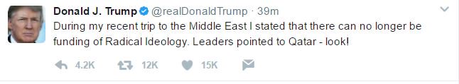 Αυτό έγραψε στο twitter o πρόεδρος των ΗΠΑ, Donald Trump αναφερόμενος στη διακοπή των διπλωματικών σχέσεων μιας σειράς χωρών με το Κατάρ.