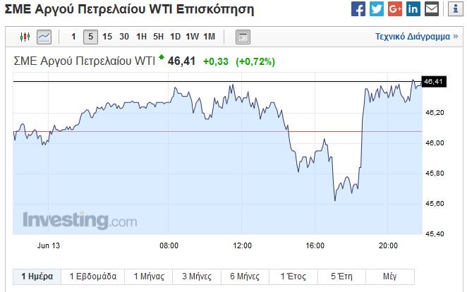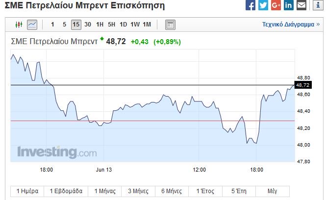 Το Brent ενισχύθηκε +0,81% με την τιμή του να διαμορφώνεται στα 48,68 δολ. ανά βαρέλι, την ίδια στιγμή που το αργό κατέγραψε άνοδο +0,74% στα 46,31 δολ. ανά βαρέλι.