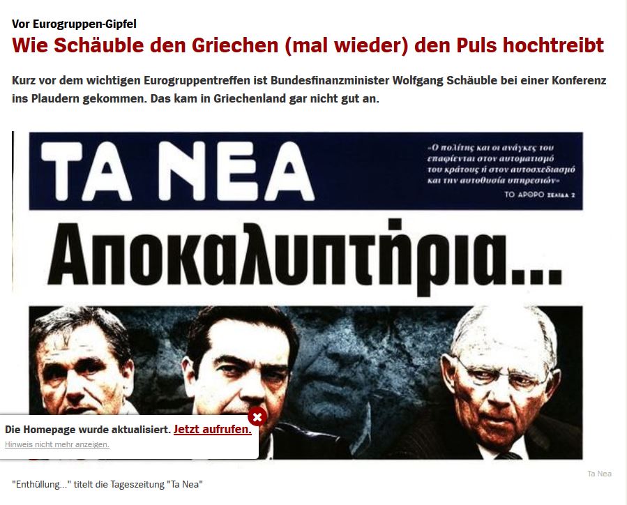 Στην Ελλάδα, ωστόσο, γράφει το Spiegel Online οι δηλώσεις Schaeuble προκάλεσαν μεγάλη αναταραχή.
