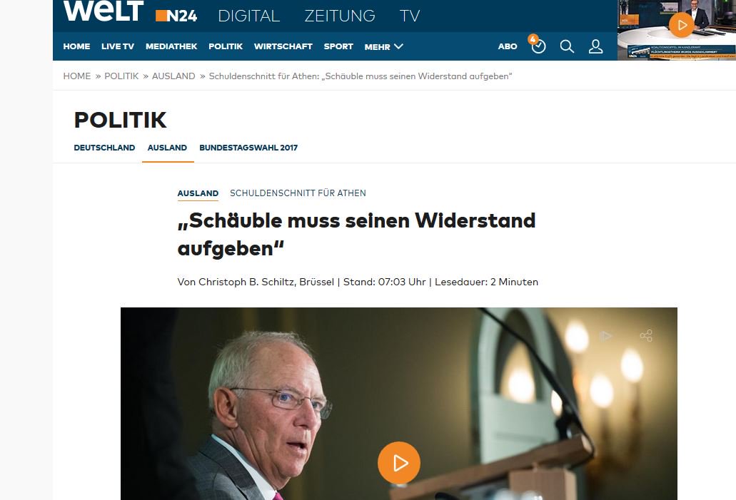 «Ο Σόιμπλε πρέπει να πάψει να αντιτίθεται στην ελάφρυνση του χρέους της Ελλάδας.