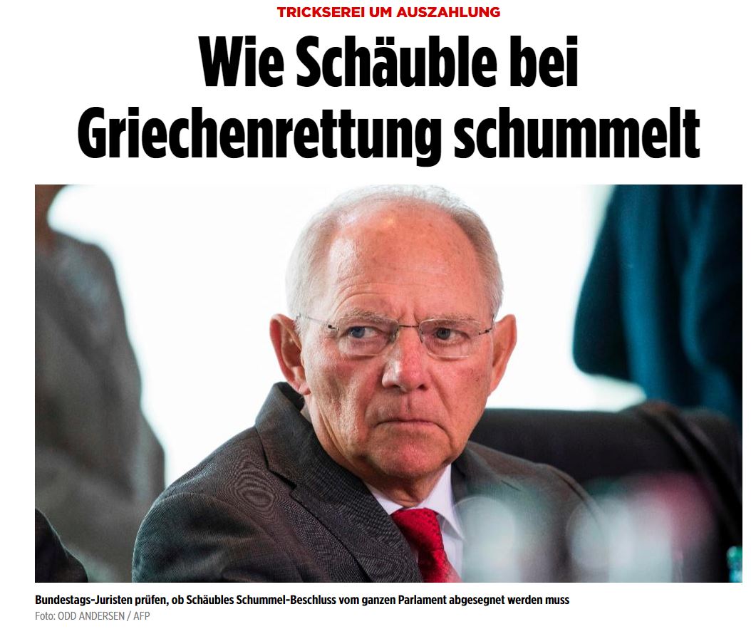 «Ο υπουργός Οικονομικών, Wolfgang Schaeuble, θέλει να κρατήσει την ελληνική διάσωση έξω από τον προεκλογικό αγώνα και το γερμανικό κοινοβούλιο» αναφέρει η γερμανική εφημερίδα και προσθέτει: «ο Schaeuble είχε υποσχεθεί στο κοινοβούλιο, ότι το ΔΝΤ θα μετείχε (και θα πλήρωνε επίσης).