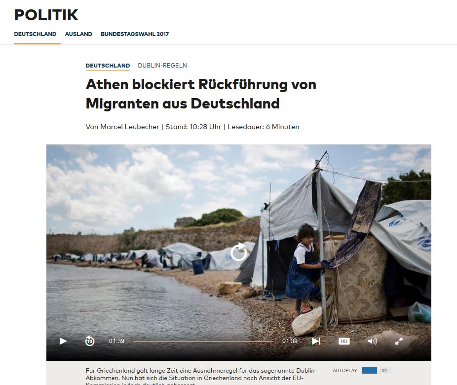 Σε άρθρο της με τίτλο «Η Αθήνα μπλοκάρει την επιστροφή μεταναστών από την Γερμανία», η διαδικτυακή έκδοση της Die Welt σημειώνει: «Παρά το γεγονός ότι ο Κανονισμός του Δουβλίνου ισχύει και πάλι για την Ελλάδα, η Αθήνα δεν απαντά στα αιτήματα της γερμανικής υπηρεσίας Μετανάστευσης (BAMF).