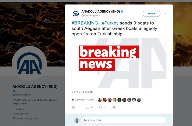 Ειδικότερα, όπως αναφέρει το τουρκικό πρακτορείο, η Τουρκία στέλνει τρία πλοία στο Αιγαίο κοντά στο σημείο όπου σημειώθηκε το περιστατικό με τουρκικό πλοίο.